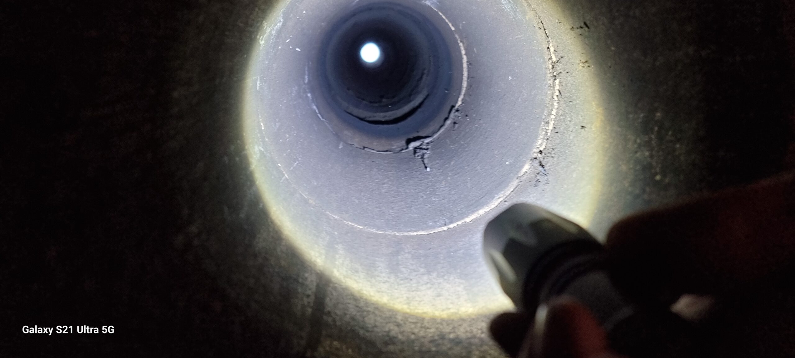Vizuálna kontrola komína a prístupných častí. Posúdenie stavu konštrukcie a vložkovania.